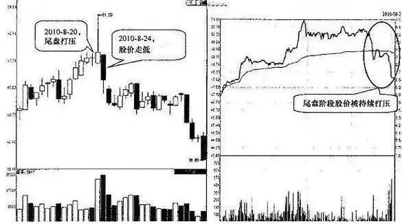 尾盘下跌,也分为两点半开始下跌和临近收盘才下跌两种情况。一般情况下,尾盘下跌有可能是主力利用尾市突击打压出货,也有可能是主力在打压洗盘。不过不管哪种情形,我们都不要急于参与。因为即便是主力在打压洗盘,那么第二个交易日往往还会有低点出现。