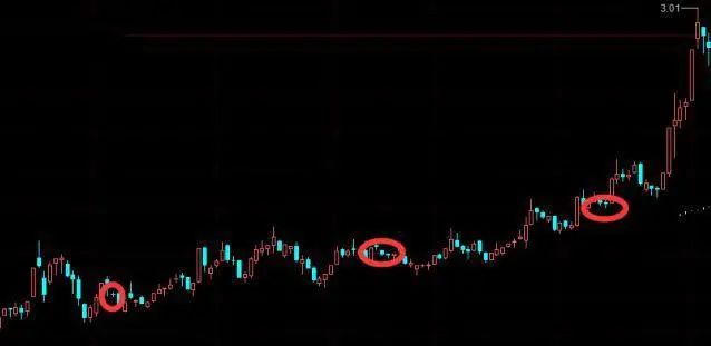 3、价格低位盘整时,经常出现小十字线,集合竞价异动