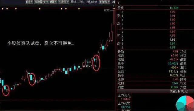 价格大幅拉升前,主力通常不会有大动作,而是派出小股侦察部队试盘,在尾盘急跌洗盘,将意志不坚定的投资者洗盘出局,为即将到来的大幅拉升行情扫除障碍。